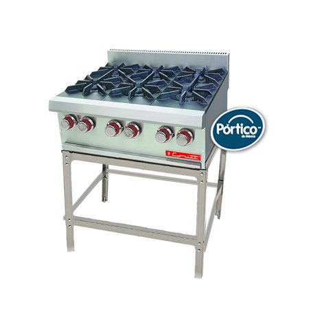 Parrilla Acero Inox con base - 6 Quemadores (Gas)